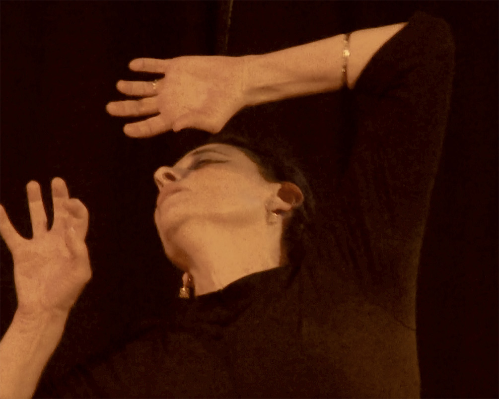 Je cherche l’équilibre des mots, des gestes, du rythme dans la parole et dans le corps pour être dans la présence éphémère de l’instant à partager.